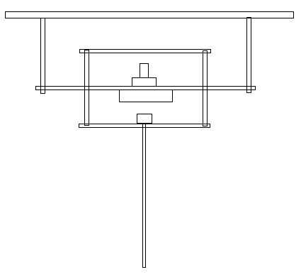 Esta placa se conecta mediante cuatro varillas a una placa debajo del interruptor, que a su vez está atada a una cuerda. Las placas superiores e inferior se unen para que sean completamente rígidos.