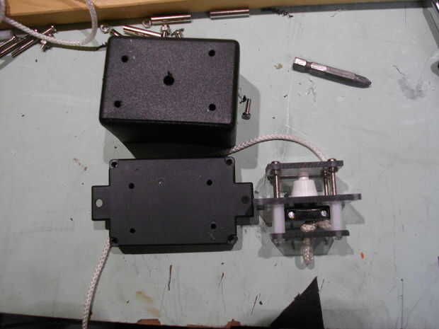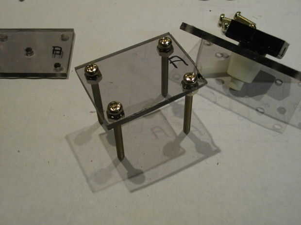 Ahora se monta el mecanismo sí mismo. Ahora debe poner en una caja. Marcar los agujeros en la caja y perfore hacia fuera. Usando los agujeros exteriores en placa media y algunos espaciadores de una longitud apropiada, Monte el mecanismo a la caja.