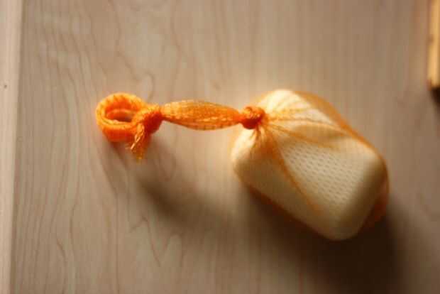Esto no es un proyecto muy original, la idea es realmente bastante extendida en Japón. Se venden estos soportes de malla de nylon para barra jabones que generalmente se unen en una cadena de empate. Éstos se encuentran comúnmente en los baños públicos en parques municipales y escuelas, donde son atadas a los fregaderos en un esfuerzo para que barras de jabón que cayó en el suelo y perdidos, o para evitar que los ciudadanos distraídos caminando con ellos.