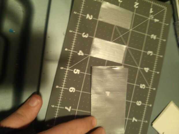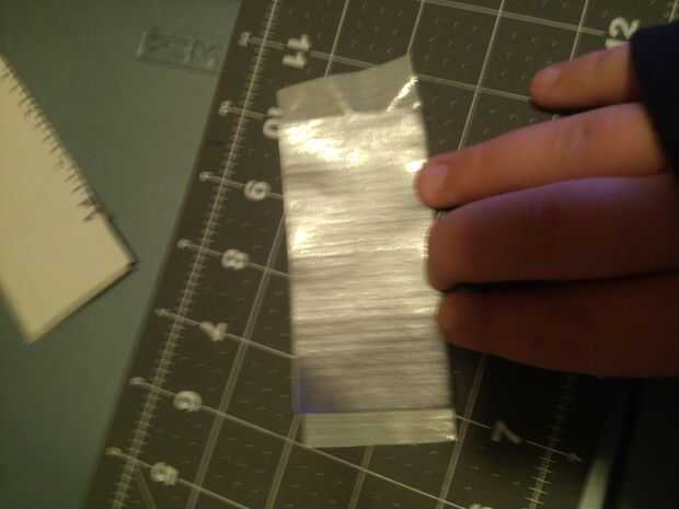 Pegar la tira de 3 y 3/4 de pulgada en uno de los extremos abiertos. Poner la mitad en el proyecto, la mitad de la superficie que está trabajando. Voltee el proyecto y cinta adhesiva en el otro lado. Ahora toma las otras tiras de 1 pulgada y repite el proceso.