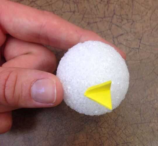 1 pegamento triángulo para el pico en la parte inferior de la mitad de la bola de espuma *