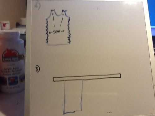 1. Su túnica es básicamente un tanque. Agarrar la tela gris, cortar un patrón tanktop doble (delantero y trasero), cosen los hombros y los lados y deben ser ajustados (foto A).