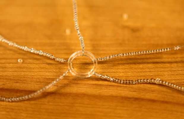 El par de hilos con cuentas a ambos lados del anillo estará conduciendo electricidad y se suelda a su sostenedor de batería y LED. Los dos cables principales serán los cables positivo y la parte inferior dos estarán los cables de tierra.
