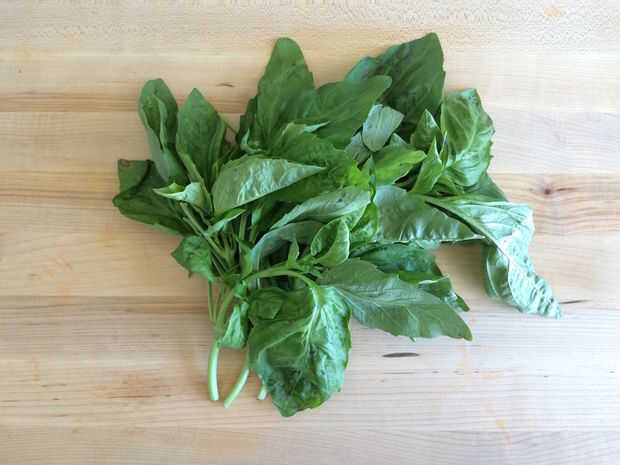 Recoger las hojas de albahaca de sus tallos. Dejar de lado unos bastante grandes para utilizar para decorar más tarde - una por vaso. El resto se utilizará para el jarabe simple.