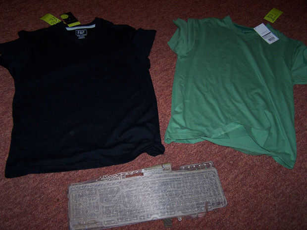 2 muy cerca montaje camisetas... El exterior es la que vamos a ser el teclado y funciona wll si se trata de un color oscuro. Asimismo el interno uno debe ser un color brillante o contraste para demostrar para arriba a través de los agujeros y hacer visible los circuitos.