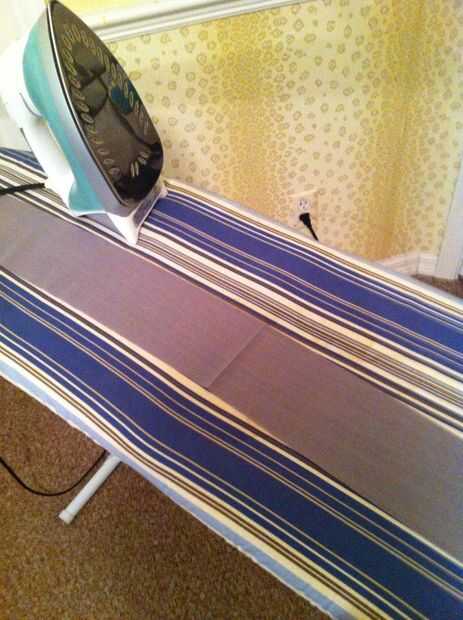 2) haciendo tiras: corté mi tela en 4 pulg ancho tiras que lo corté en cuadrados más adelante.