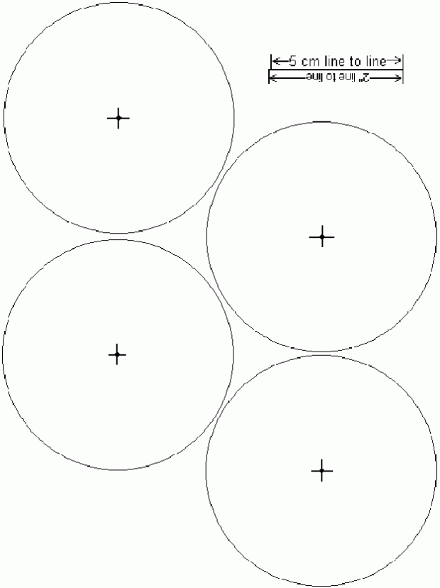 (también se podría utilizar una tapa de plástico de soda para trazar). Patrones de sólo 4 de los seis que queremos caber en una página, así que si no desea volver un par de los patrones, a impresión la página dos veces. Aunque es posible hacer el trabajo superior con sólo un disco, tengo más éxito cuando se utiliza seis discos. La masa combinada parece crear tops que son menos volubles.