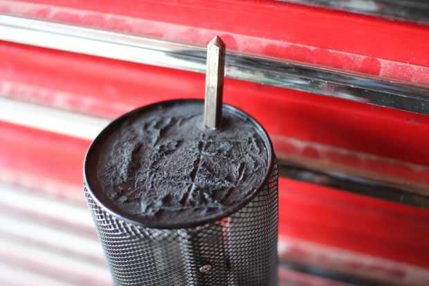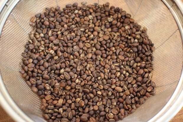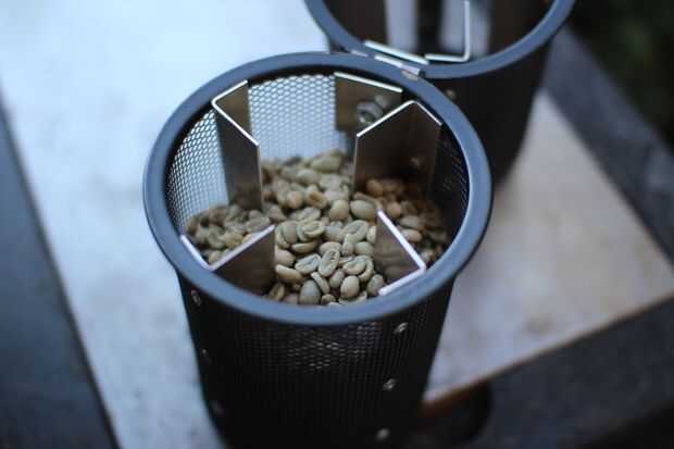 Cargar el tambor con una libra y media de café verde, ponerla en el asador durante unos 15 minutos con el grill en alto hasta que el café se tuesta. Volcar el café tostado en algún tipo de haba de enfriamiento artilugio o un colador. Enfriar los granos. Esperar 24 horas, moler, colar.