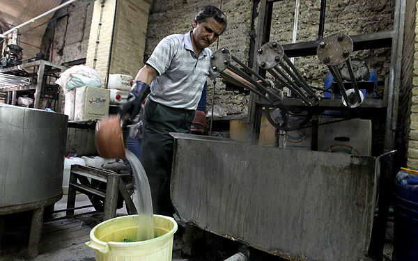 Verde color: este color es una combinación de presentaciones de amoníaco de sal, cobre y vinagre – los huesos cortados se vierte en el plato por la solución de color y mantiene hacia la luz del sol cerca de seis meses. Como la fuente de los huesos de camello es hoy difícil, uso de la madera naranja en vez de huesos de camello y color por color especial para teñir lana. (Figura 4)