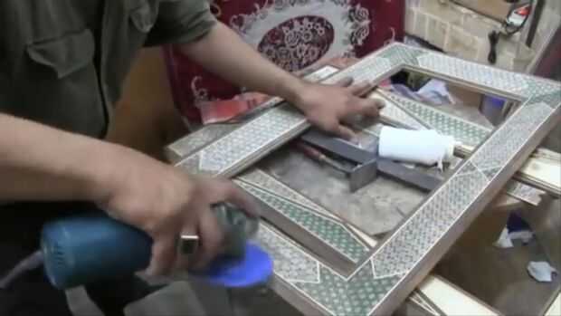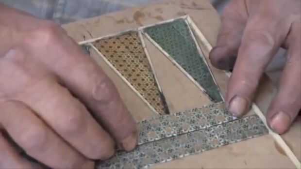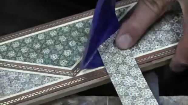 Segundo paso: para lograr una incrustación, primero un pintor pinta te forma especial. Estas son depende de tu gusto y un pintor puede poner sus proyectos en las cosas con incrustaciones, como mucho como dibuja será más poco, más detallada y más regular, aumentar la conveniencia de marqueterie. Todos estos relacionados con la habilidad del pintor y su paciencia y precisión. La simetría de todas las flores y formas en la superficie y los ángulos y los lados de los proyectos son muy importantes y afectado en la calidad. Con el fin de familiarizar a la calidad del dibujo se refieren a este ensayo. (Figura 11)