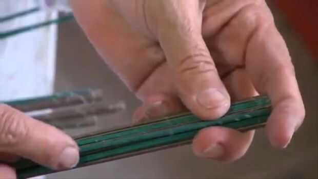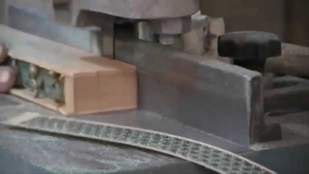 Step12: cortamos "ghameh" por la Sierra de banda que tiene una cuchilla especial para convertir las capas a las capas 1-2 mm. Lo llamamos "lengeh" (Figura 22)