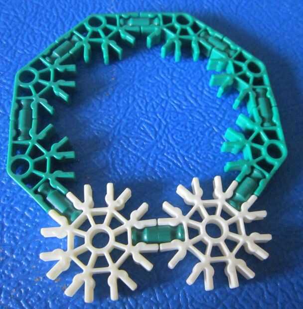 La parte inferior es principalmente solo un círculo modificado de conectores verdes y barras verdes. Si usted quiere, usted puede construir la parte superior e inferior ahora porque son lo mismo.