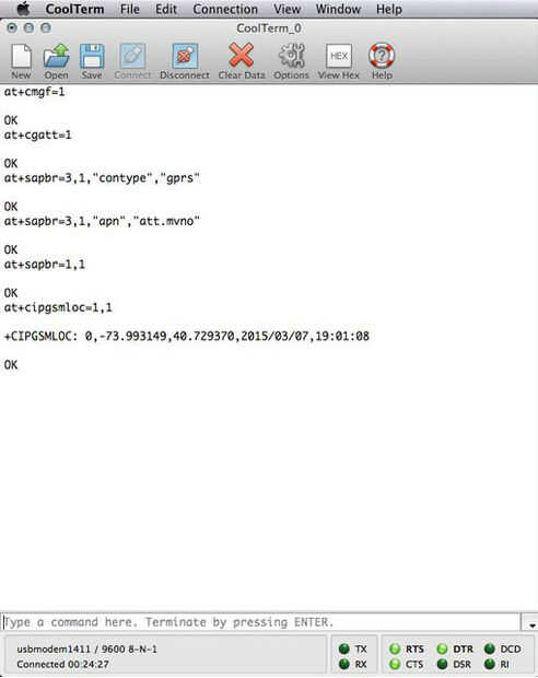 Para hacer una petición GET, es un proceso similar al principio. Debe escriba todas estas fuera y asegúrese de que la tarjeta SIM se conecta y hace una petición GET manualmente antes de continuar. Es realmente muy importante en estos sistemas complicados para comprobar la funcionalidad en cada paso por lo que si deja de funcionar sabes exactamente en qué punto dejó de funcionar. Hace mucho más fácil el proceso de depuración.