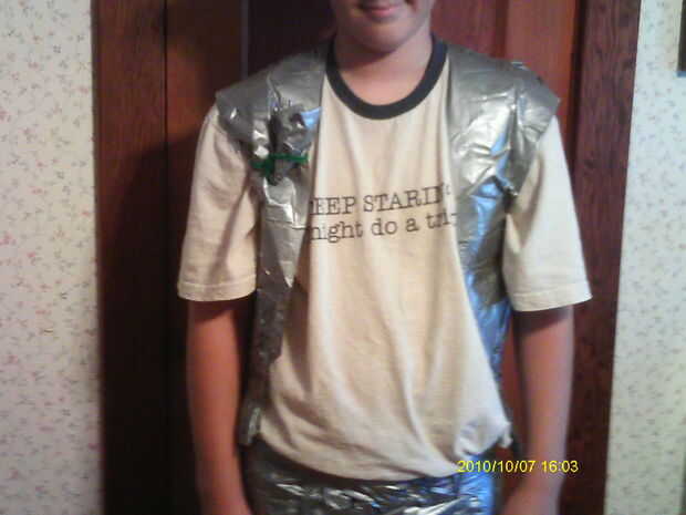 Cómo hacer un traje de cinta del conducto (pantalón, chaleco, sombrero, rosa). ¿ (4 / 6 paso)