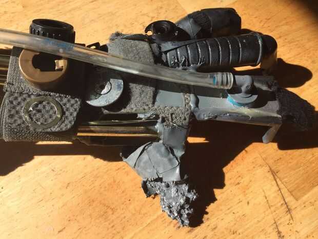 Una vez todo pintado y seco, empezar a agregar en tu hardware, especialmente la tubería o cableado que va de la mano hasta su brazo. Usted querrá pegar estas en lugar de todos los diferentes manguitos y piezas del hombro.