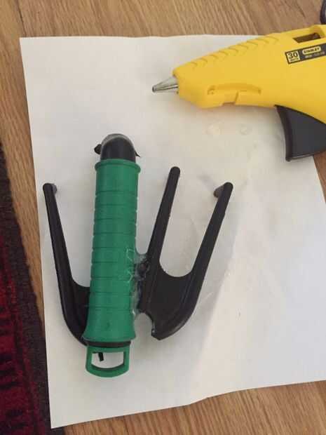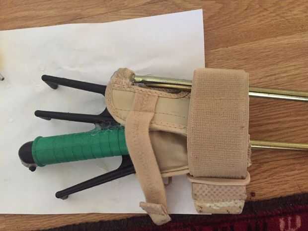 Puse la ortesis de muñeca y luego córtalo más corta que apenas cubría mi muñeca. Me rompió aparte mi horquilla jardinería plástica y arreglan las piezas en lo que pensé que sería buenas como los dedos y luego les pegan.