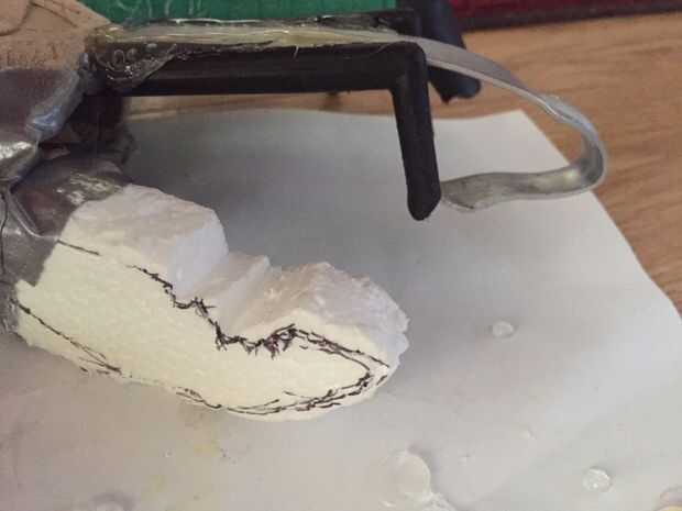 Pulgar de furiosa se ve como un agarre pliar o vice, así que tomó algunas pliars real y trazado de forma en espuma de poliestireno. Me labró la espuma de poliestireno y una hendidura en la parte trasera para mi pulgar en.