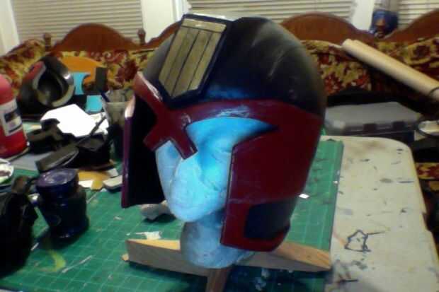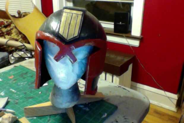 -El casco está desgastado, así que añadí un poco blanco a mi pintura negra de acrílico... el ajuste es rojo...