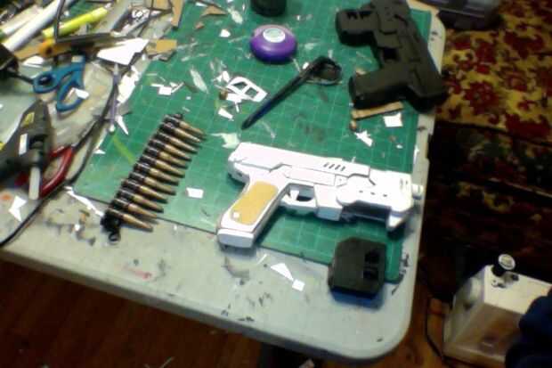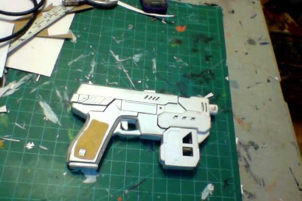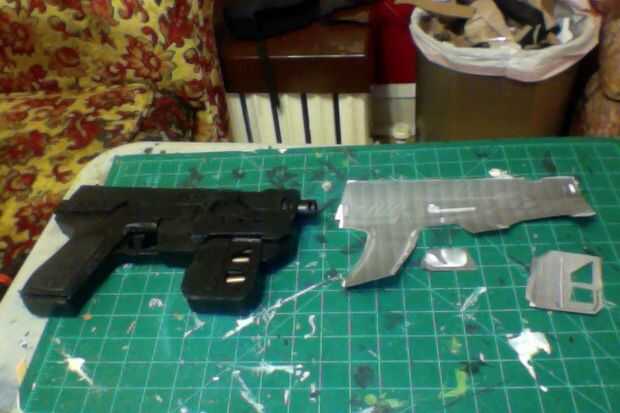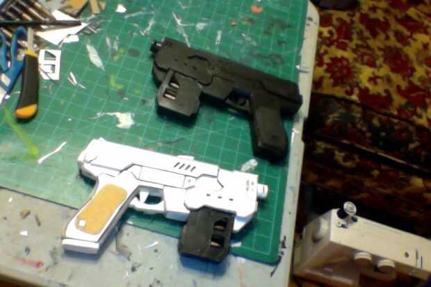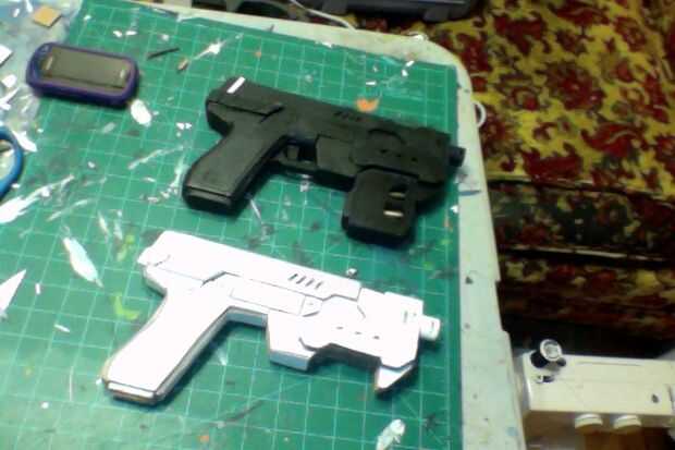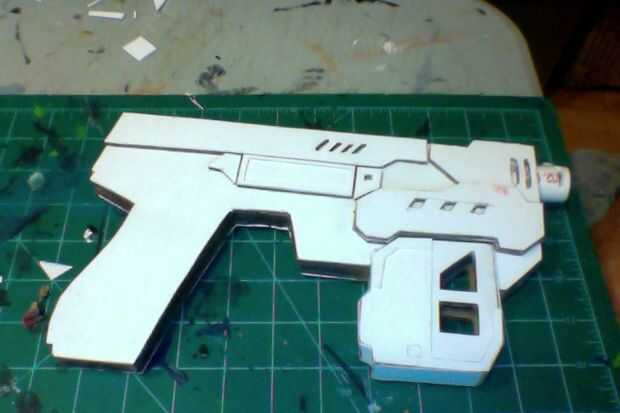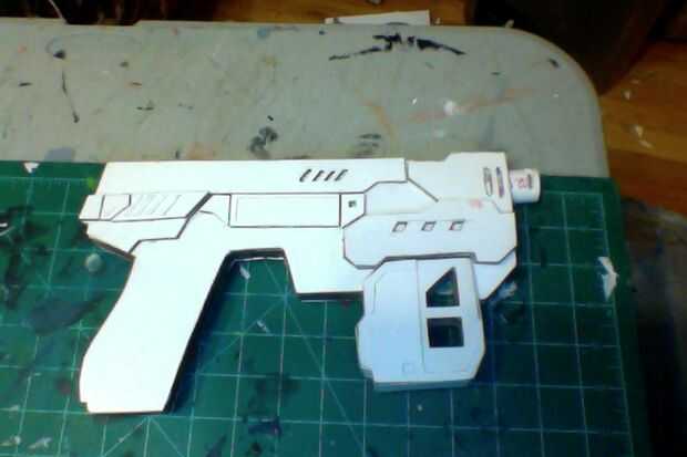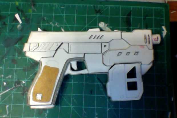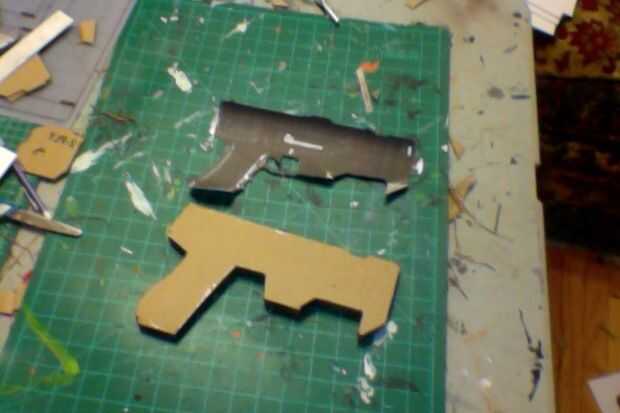 Encontrar fotos de la pistola e imprimir una imagen de tamaño natural en su computadora. Si no haces eso, luego sacarla para que sea tamaño natural. Si tienes que dibujar, luego realizar 2-3 copias de este cuadro primero.