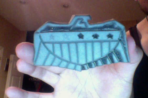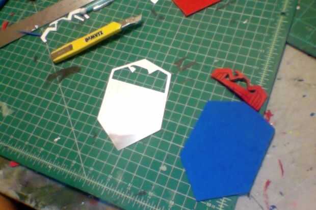 -Dibuja la figura en papel y después la corte de la espuma de EVA. cortar los detalles con su cuchillo del exacto. calentar el cuchillo del exacto en la estufa y quemar la espuma para crear profundidad en ciertas áreas. He añadido algunas worbla a la parte posterior de este por lo que sería un poco más robusto.