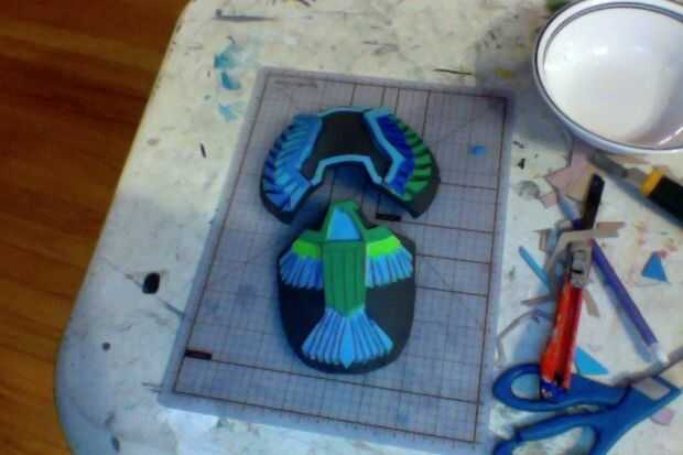 usa la espuma de EVA como base y entonces tomé más espuma de artesanía y poner en la parte superior. Usé una dremel para pulir los bordes.