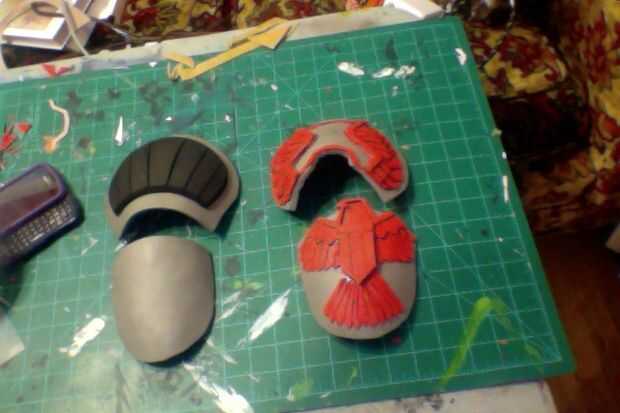 Una vez que hayan terminado sus pedazos del hombro, no se olvide de añadir una capa más de artesanía de espuma debajo de las piezas para crear el borde de la moldura.