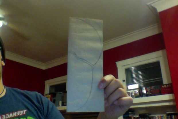 Empiece con su tamaño. Tomé un pedazo de papel y dobla por la mitad. recortar la plantilla de la espuma de EVA.