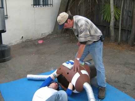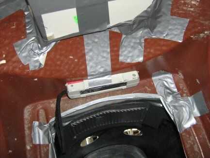 a continuación cortamos los agujeros en el pecho para el panel de control y la cámara de todos importante "Go-bots". Luego, utilizando grandes cantidades de cinta adhesiva y pegamento caliente, fijarse.