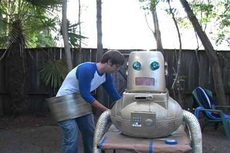 Casi podría conseguir lejos con no tener una mitad inferior ya que a menudo no disparar por debajo de la cintura, pero es bueno tener la opción. Así que hice mi sección media y piernas super sencillo. Un revés de la cortina de lámpara y algún cartón con cinta en los tubos. Cortan detrás de las "rodillas" de las piernas del robot para que puedan doblarse un poco. Pintura de ambos para que coincida con la mitad superior.