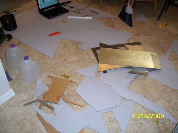 Si todavía no has pensado sobre materiales, ahora definitivamente es el momento. La mayoría del traje se hará de su material de junta. Usted puede elegir cartón, cartulina o algo similar. Elegí el entablado estructural. Usted puede encontrar en Lowe para alrededor $10 por hoja de 8'x 4'. Es como la cartulina, pero mucho más fuerte. También elegí esta por lo que no tendría que fibra de vidrio lo más tarde.