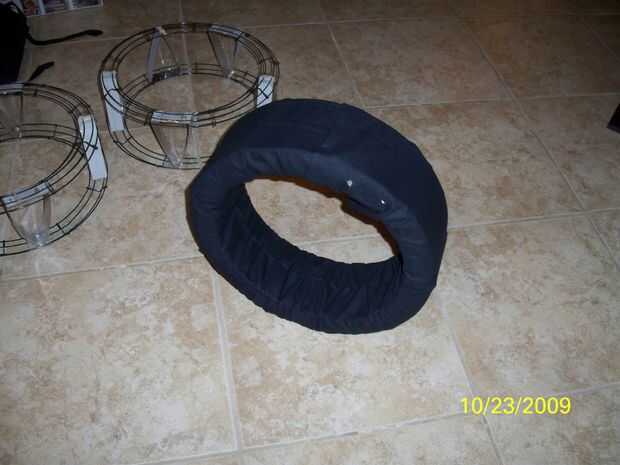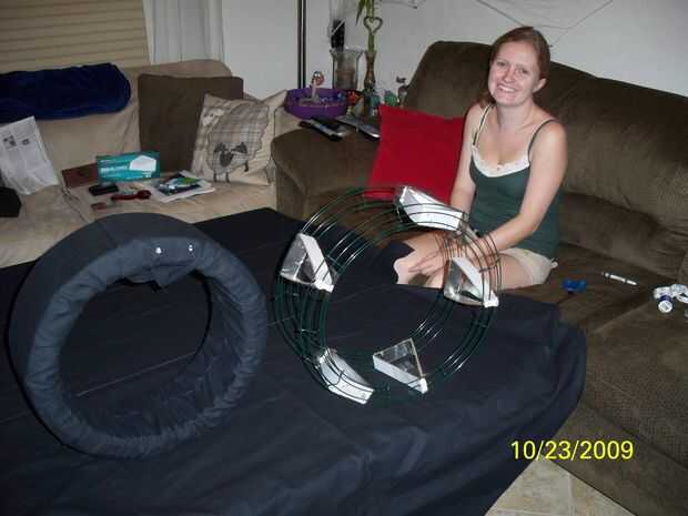 Usé un paños resistente negro para poner los marcos de la rueda. Mi novia Rachel era lo suficientemente agradable para ayudar a unir el paño puesto que mis tareas de costura necesitan algo de trabajo.