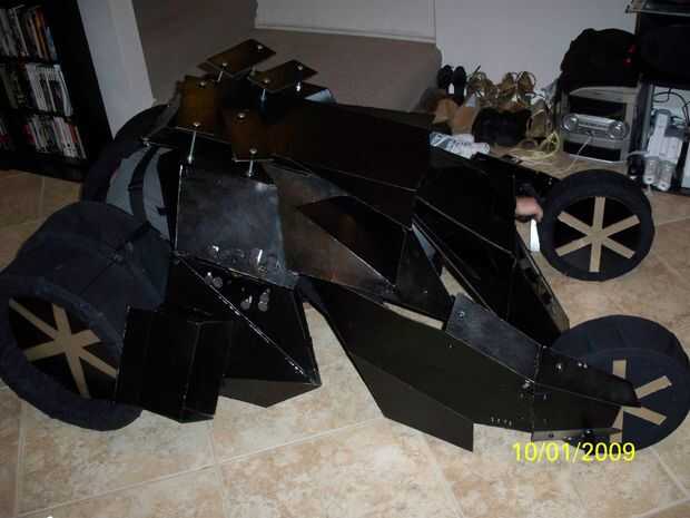 Se ha añadido spoilers en la parte superior del vehículo, de placa y tornillos largos. Corte rayos y había añadido a las ruedas delanteras. Puesto que las ruedas traseras tenían agujeros muy grandes, me cortar círculos grandes y pintado rayos sobre ellos.