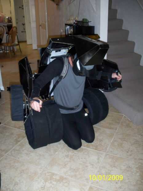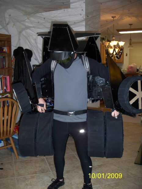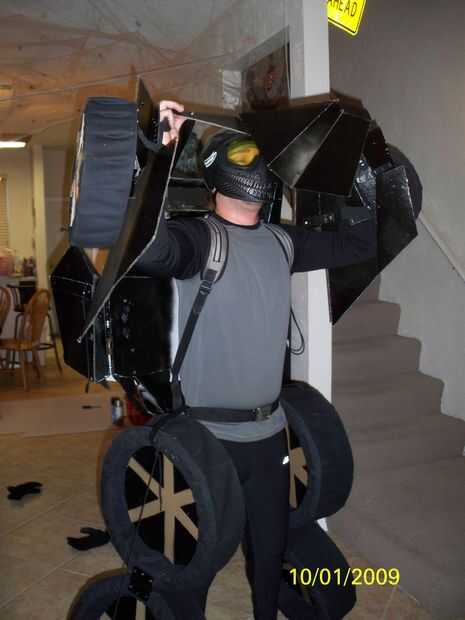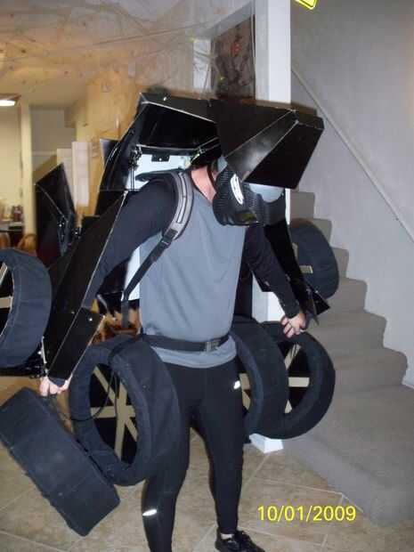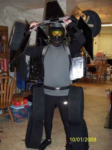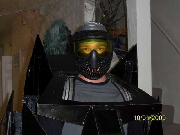 Probé de todo ajuste y ajustar donde necesitaba. Me puse negro apretado correr una camisa deportiva de manga larga y pantalones. Para mi cabeza llevaba un gorro de baño gris para cubrir mi pelo y una máscara de paintball negro para cubrir mi cara. Sentí que esto le dio una mirada agradable robot.