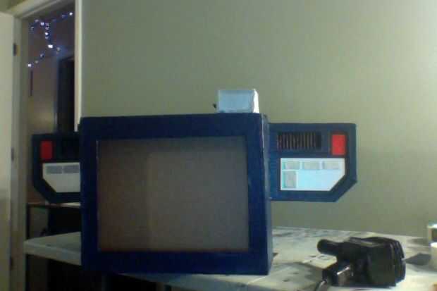 Puede ser separado del hombro izquierdo. Utiliza un trozo de elástico para garantizar en el pecho, que permite al usuario para poder poner su brazo hacia arriba y hacia abajo. La razón de esto es que yo quería poder tocar realmente la expulsión botón que se encuentra en la parte superior izquierda de su pecho.