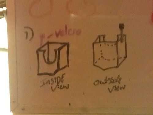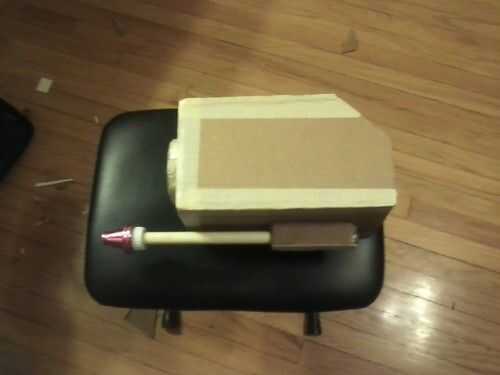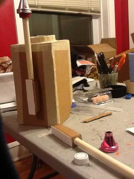 3. luego haces tapas (uno para la muñeca, de codo) para ambos extremos de la caja. Cortar un cuadrado en la tapa inferior de codo de su brazo caber a través. Esto debe ser algo ceñido alrededor de su antebrazo. (Foto 2)