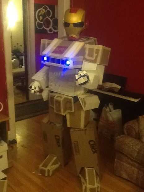 Para los faros, yo había encerrado dos mini linternas de LED en cartón de los casos. Los casos dentro del pecho pedazos por lo que fueron extraíbles de velcro. También puse algunos acetato azul en el interior de los círculos de la linterna. (foto 6)