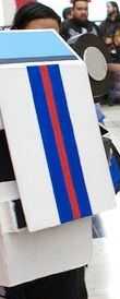 Jazz tiene una pieza hacia atrás de largo, que es en realidad el parabrisas campana y frente de su modo de coche. Me llevó un rectángulo más pequeño (para el parabrisas) y un rectángulo largo y había atado en el pecho y la cintura con velcro. también ayuda a mantener la cintura en su lugar.
