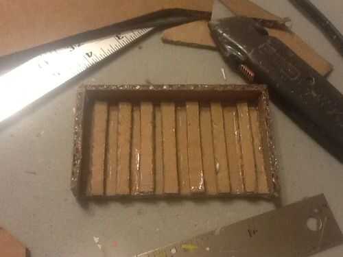 A partir de ahí, hice una pequeña rejilla en el frente de la caja torácica. Mida y corte la sección. Usted puede incluso utilizar la cartulina de la sección de que corte hacia fuera. (Foto 3)