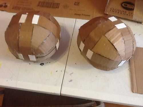 1. se harán bolas de cartón... es como hacer un casco del tutorial de Darkseid, pero están haciendo "coronas" en ambos lados de la bola. (Foto 1)
