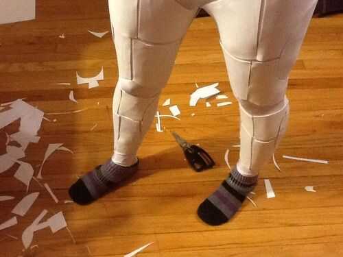 cortar varias formas de la espuma blanca y pegarlos directamente en el traje de zeta...