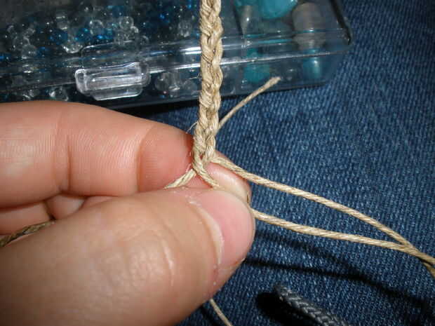Cómo hacer un trenzado pulsera utilizando cáñamo cuerda (2 / 6 paso)