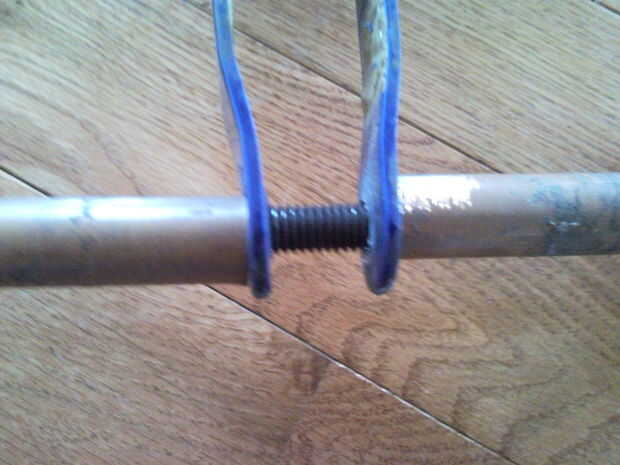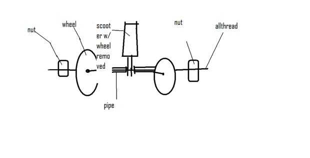 tuerca de rueda, tubo, scooter, tubo, rueda, tuerca, todo eso en el allthread en ese orden