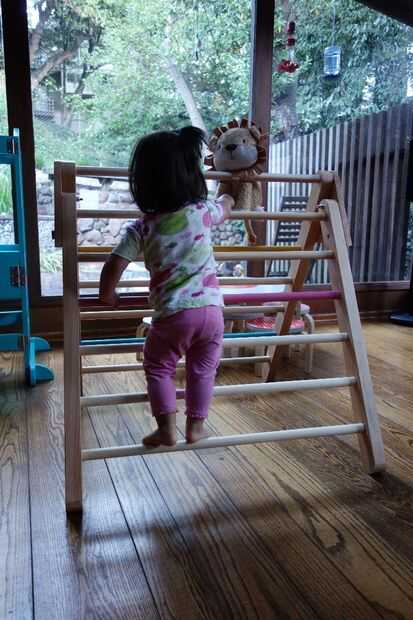Emmi Pikler fue un pediatra Húngaro que desarrolló una nueva teoría del desarrollo del niño en los años 1930/40, basado en que permite al niño moverse libremente y desarrollar a su propio ritmo. (Magda Gerber, quien fundó RIE - la filosofía de crianza a la que suscribimos en su mayoría - era estudiante de Emmi Pikler.) En la práctica esto significa que los padres y cuidadores no ponen al niño en cualquier posición que no pueden entrar por sí mismos - a menudo duro algo como un padre cuando desee asegurarse de que su hijo cumpla con el siguiente hito oficial 'a 'tiempo. También significa dar a niños la oportunidad de aprender cómo pueden mover sus cuerpos (y subir) por lo tanto, el triángulo de Pikler.