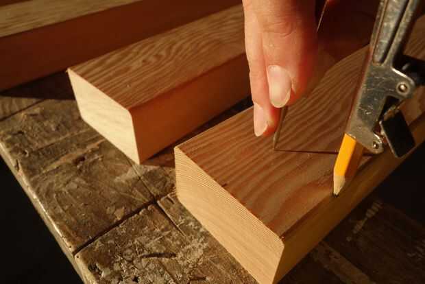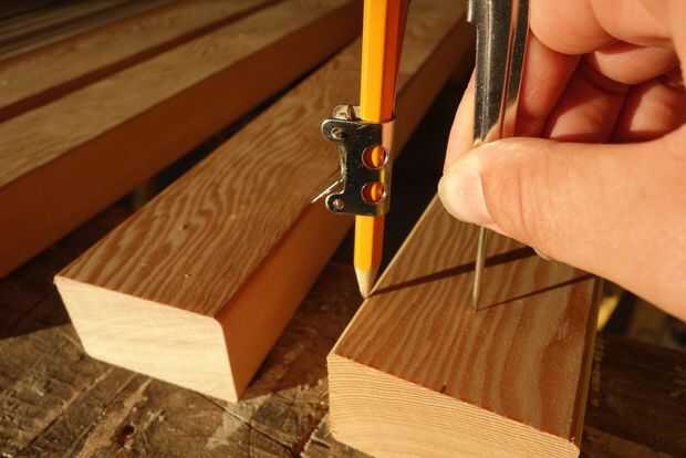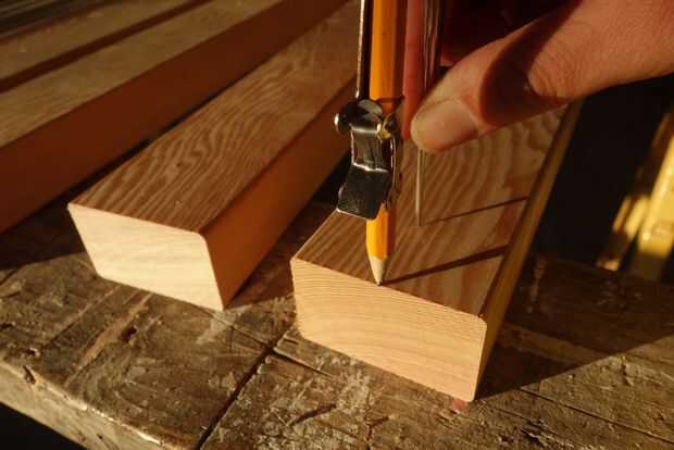 Medir el ancho de uno de los lados planos de la madera; un nominal 3" pieza amplia realidad será aproximadamente 2 ½" de ancho. Ponga una marca de lápiz pequeño al final de tu tabla a mitad de camino. Establece la brújula en la mitad de la longitud que mide y la ponga aproximadamente centrada entre los lados y un extremo de la tabla. Comprobarlo en las tres formas y centrar el punto de la brújula si está apagado. Dibuje un semicírculo que conecta los dos lados y la parte inferior del tablero. Repita en el otro extremo de la misma Junta y también en las otras tres tablas.