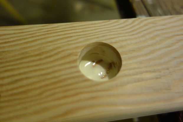 Hacer una conexión seca para asegurarse de que sus tacos todos encajan en los agujeros. Algunos de mis tacos es necesario lijar para adaptarse y uno era demasiado estrecho de 1/8" y tuvo que ser sustituido por lo que no sacudan alrededor en el agujero. Idealmente los tacos se levante fácilmente en y hacia fuera, pero un ajuste apretado es aceptable siempre y cuando el pasador de ir hasta el fondo del agujero en el acoplamiento seco como el pegamento lubricante cosas para arriba.