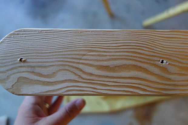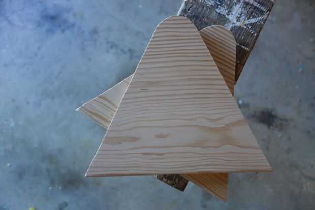 Si la Junta de 1 x 10 tiene más lados y bordes, poner el lado bueno hacia usted y el agradable borde abajo hacia usted. Alinee la parte inferior de la plantilla con la parte inferior de la Junta y cualquier drenaje alrededor de él o un aerosol ligero tachuela para sostener en el tablero (sólo rociar la plantilla, no la madera y deje que se seque antes de colocar para que no te papel soldada a la placa). Utilizar el punto de un tornillo o broca para empujar a través y marque los orificios marcados A y B solamente (hacer esto primero en caso la plantilla viene floja durante el corte) y luego usar la sierra para cortar la forma.