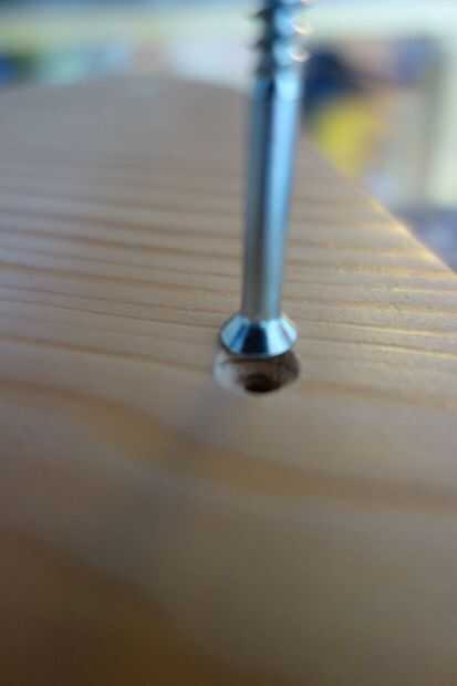 Perfore con la 1/8" bit en cada uno de los cuatro agujeros en los carriles de lado largo para poner hasta un orificio piloto en los tacos como puedas.