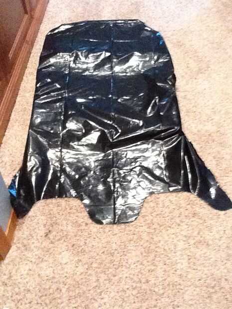 doble la bolsa sobre el trineo y cinta adhesiva a los lados. Puede cortar la falda o mantenerla (interrumpe mina)