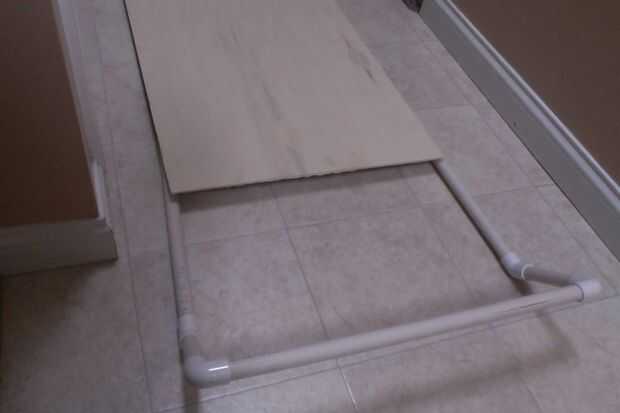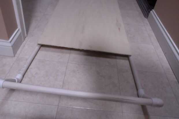 Una vez que haya terminado de construir su marco ahora vas a colocar la pieza de madera contrachapada en las dos piezas largas de tubo de PVC. Una vez que tengas la madera donde usted quiere que vaya usted va a utilizar el taladro y tornillos para asegurar la madera contrachapada no se separan de la PVC.