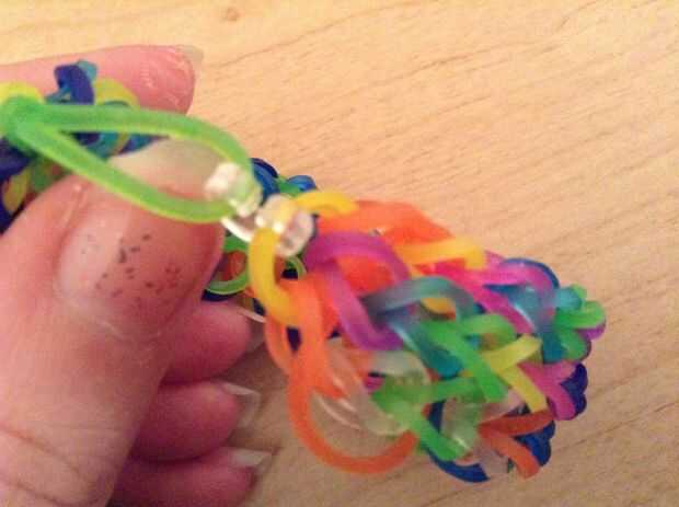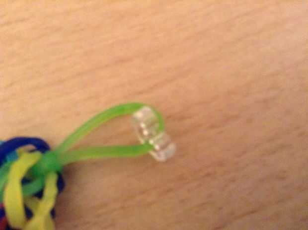 el video de arriba te enseña cómo hacer un doble rayas cola de pez con la cola de monstruo del telar de arco iris. Este es mi propio diseño.